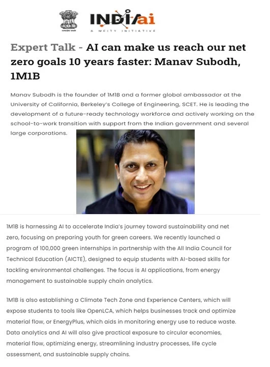 Expert Talk - AI can make us reach our net zero goals 10 years faster: Manav Subodh, 1M1B